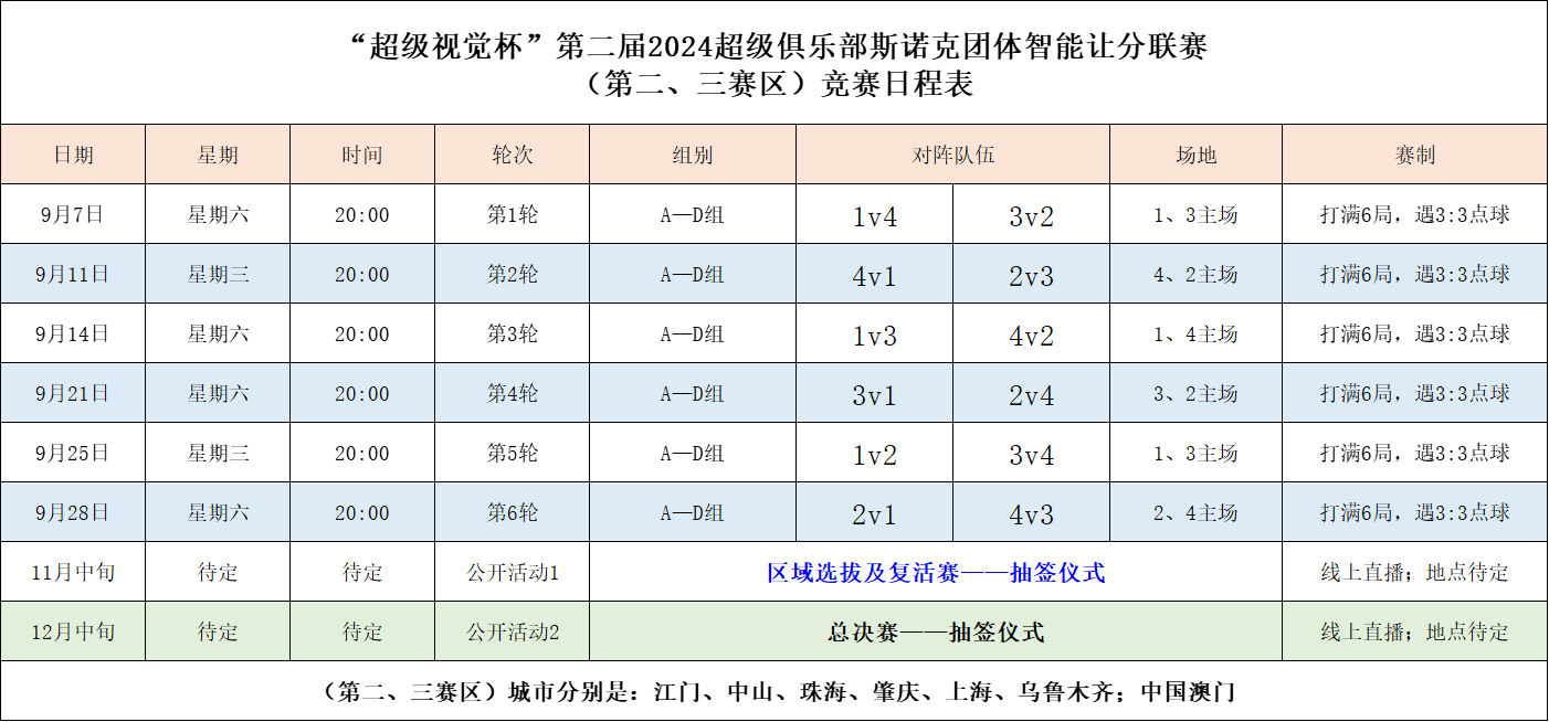 区域选拔及复活赛竞赛规程——“超级视觉杯”第二届(2024)超级俱乐部斯诺克团体智能让分联赛