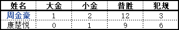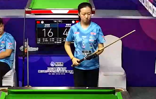 第2局,康楚悦打进6号成功k活8号,无奈9号叫位失误,白球掉袋,错失大金,周金豪获普胜。