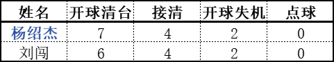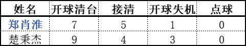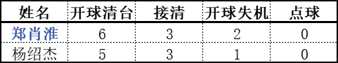 李屹男在双败第一轮中逆转战胜郑宇伯。上半场比赛郑宇伯8:3稳稳掌握比赛节奏,李屹男2接1炸,再轰出四连胜,以13:11的比分实现逆转。