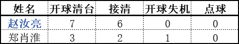 赵汝亮在胜部第二轮败给杨邵杰,于是一路从败部过关斩将闯进决赛。