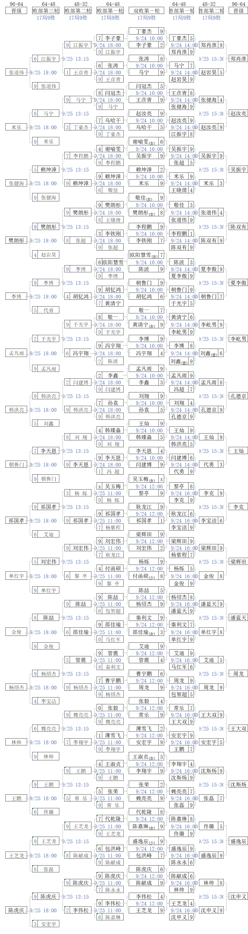 正赛第一阶段(96人双败)