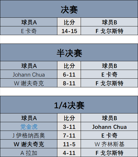 2024年9球世锦赛·党金虎勇夺第五名 ·赛果