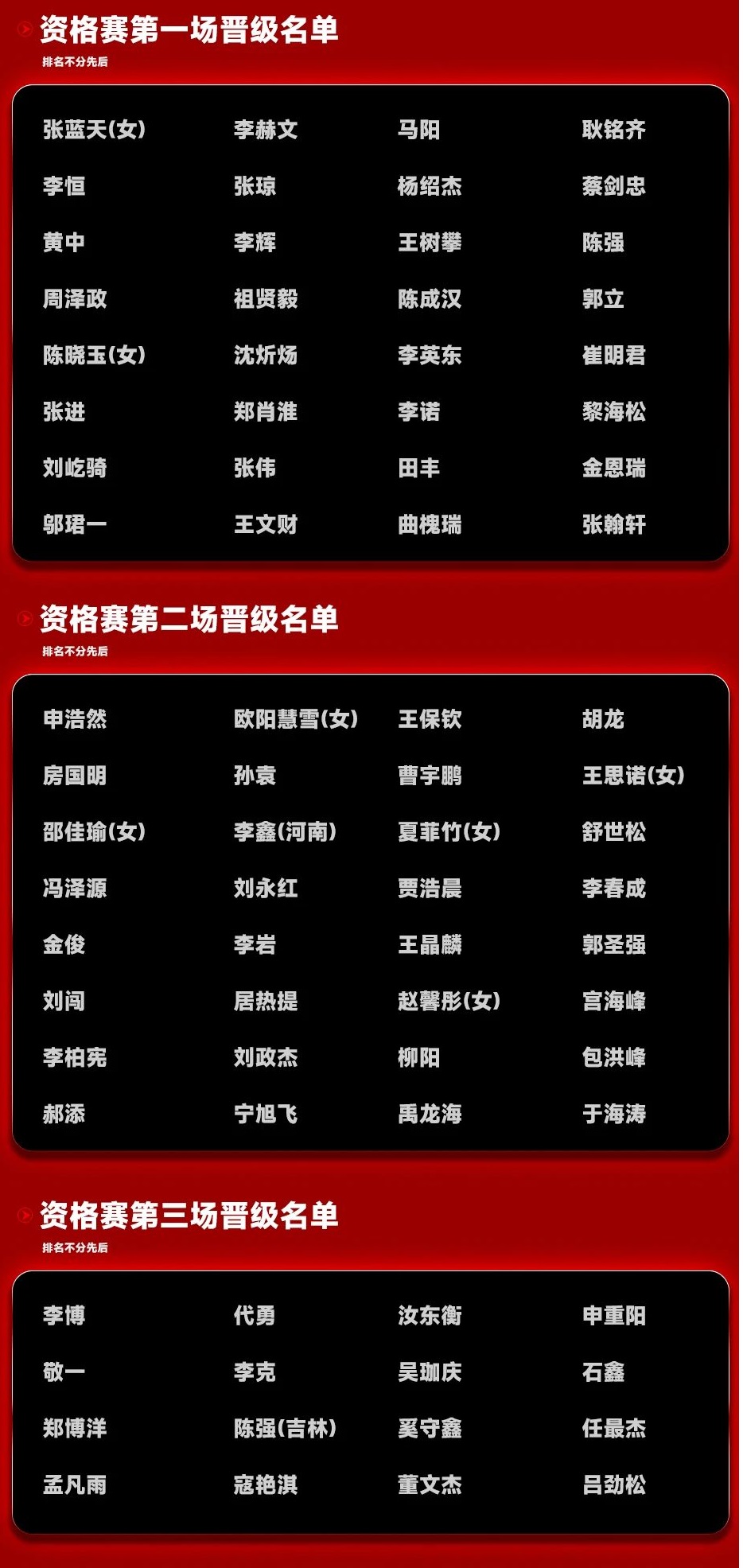 资格赛晋级名单