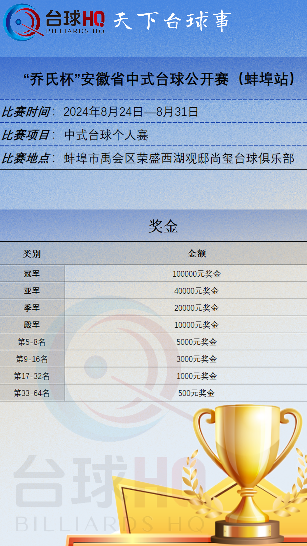 乔氏|中式公开赛(安徽蚌埠站)·赛果【石汉青夺冠·10万】