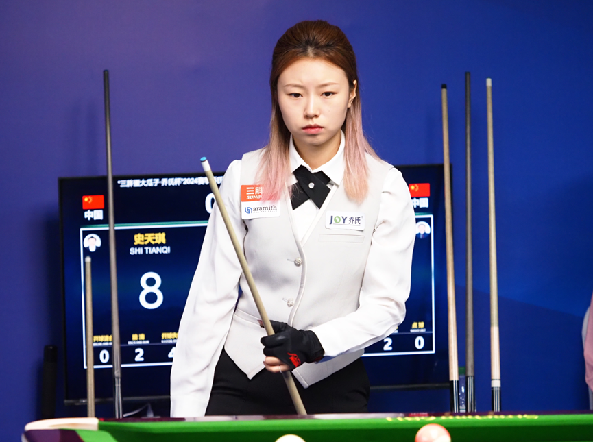史天琪与唐春晓女子对决,史天琪六连胜至10:3领先,最终12:6胜出。