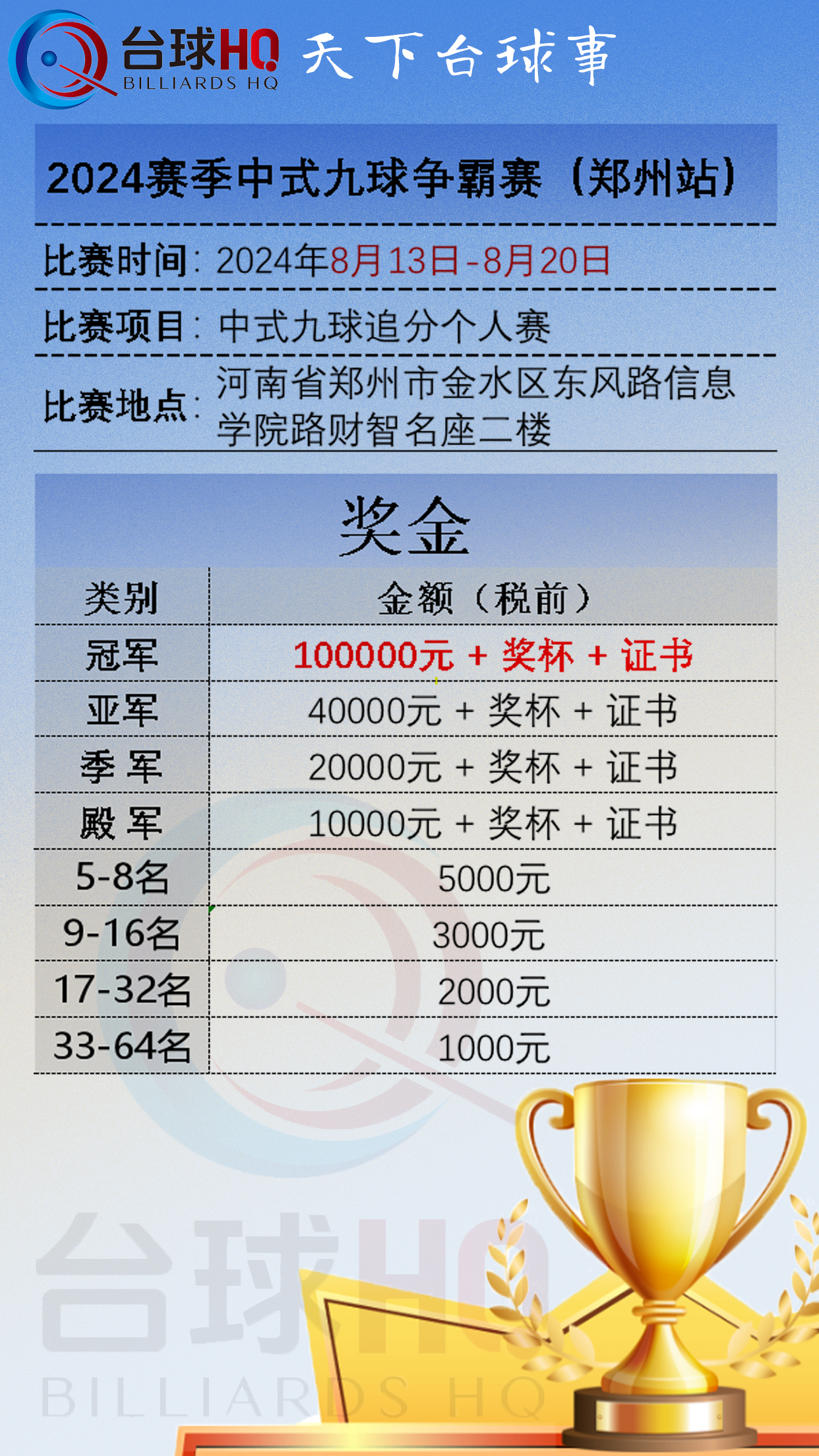 中式九球争霸赛(郑州站)奖金·地点