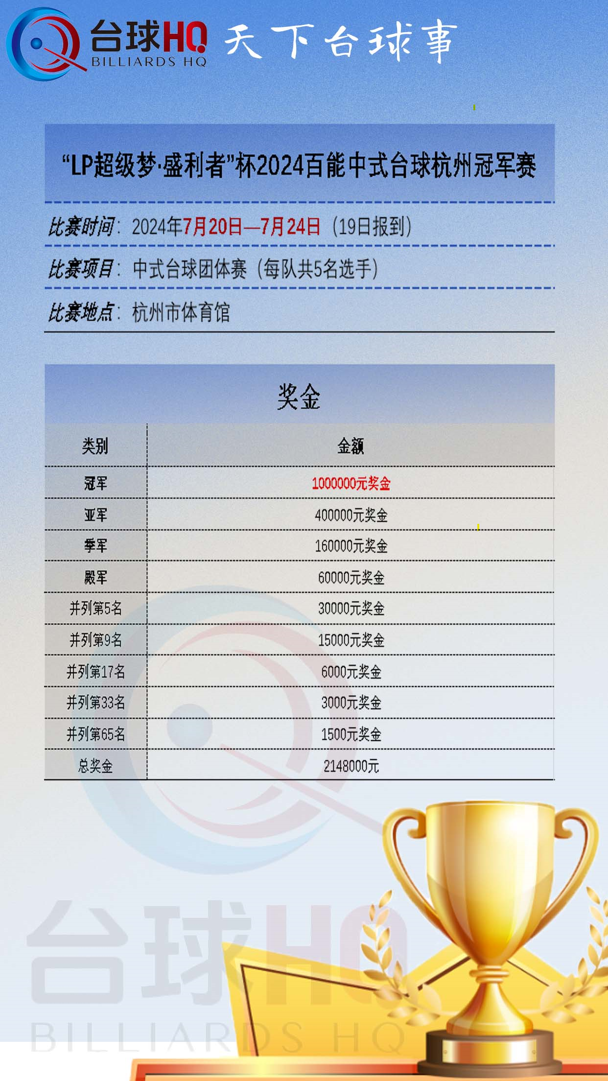 LP|盛利者 中式台球杭州冠军赛·地点·奖金
