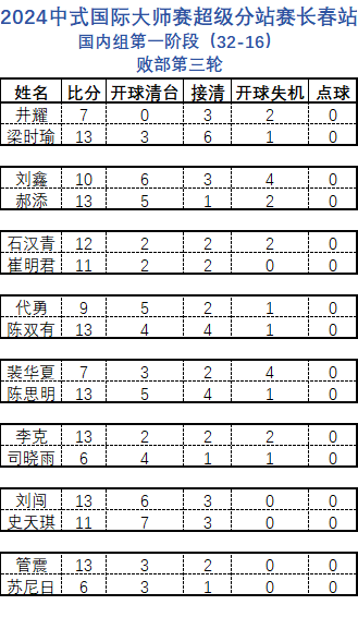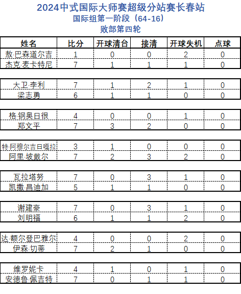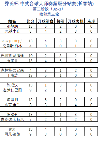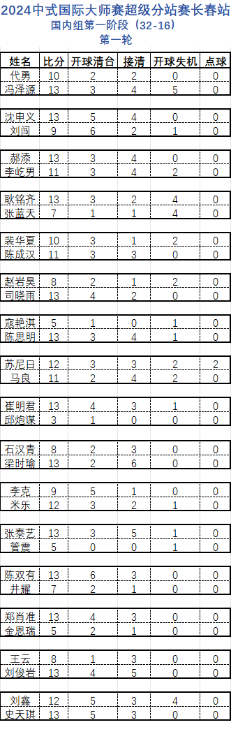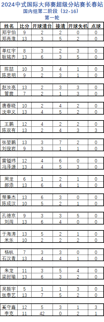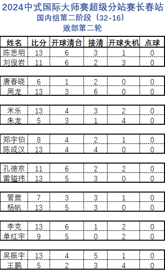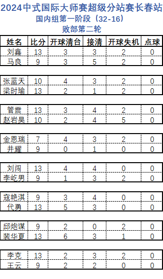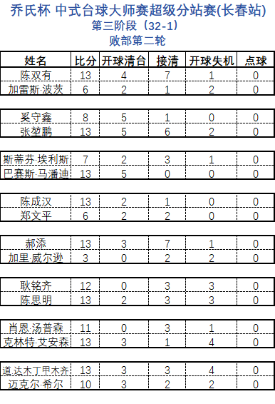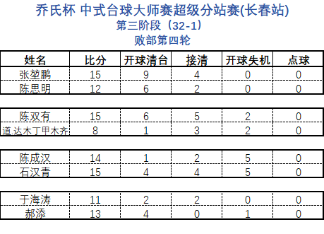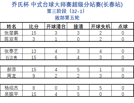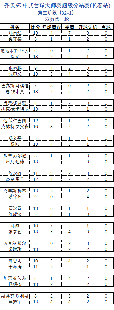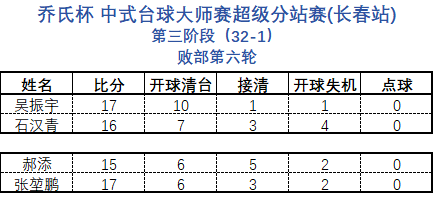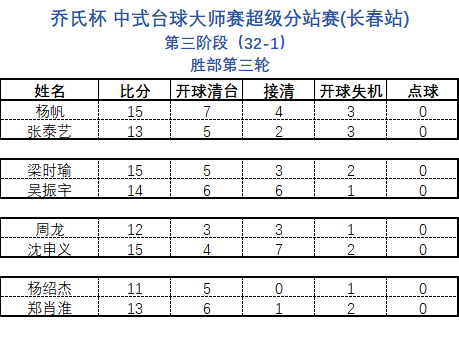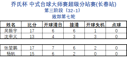 乔氏|大师赛(超级分站赛·长春站)·比分播报
