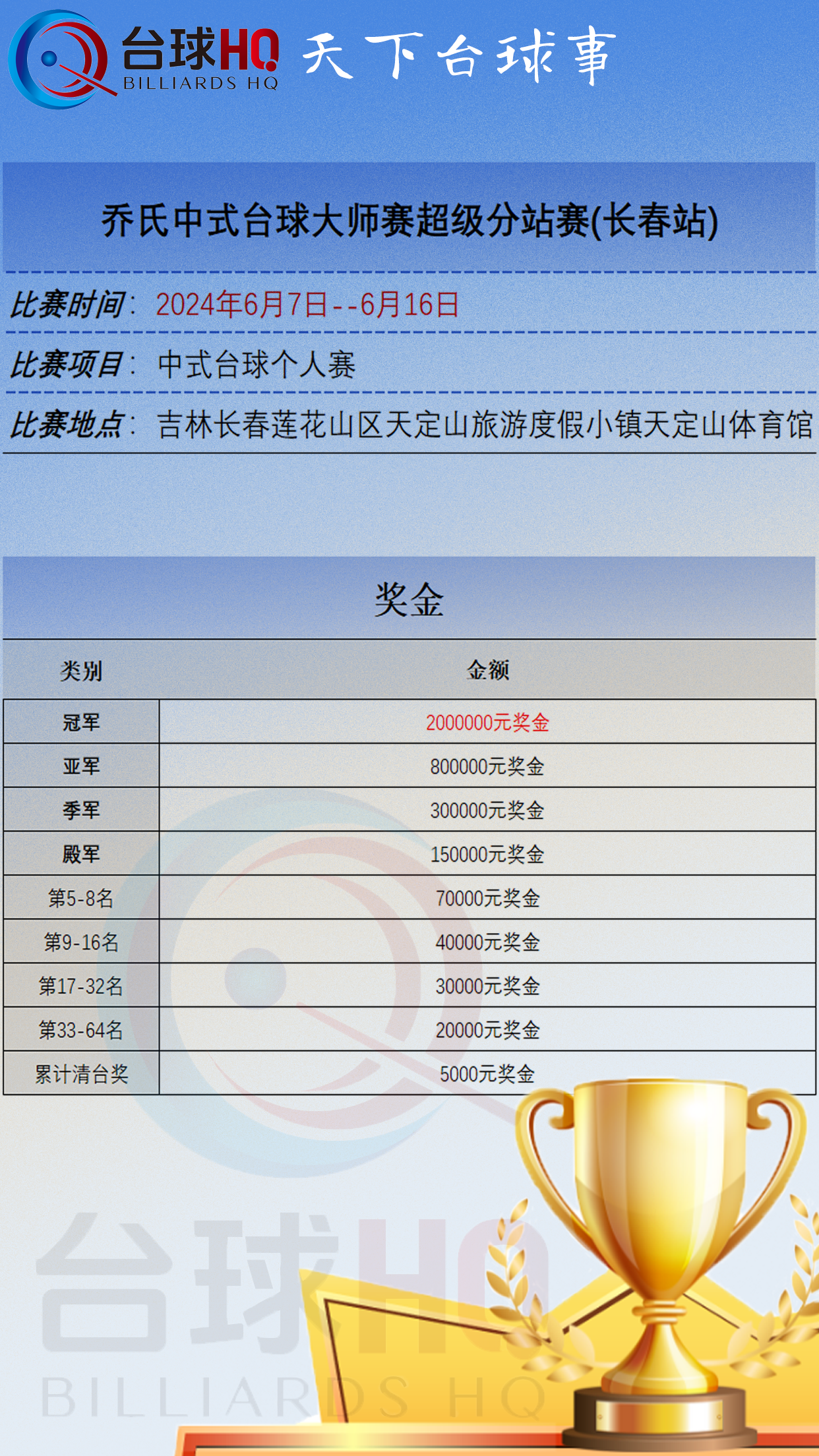 乔氏|大师赛(超级分站赛·长春站)·奖金·地点
