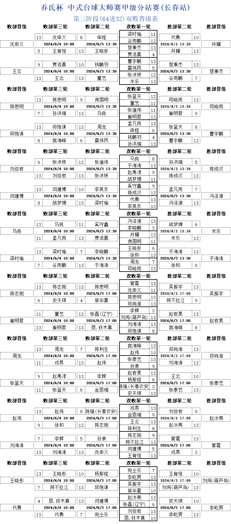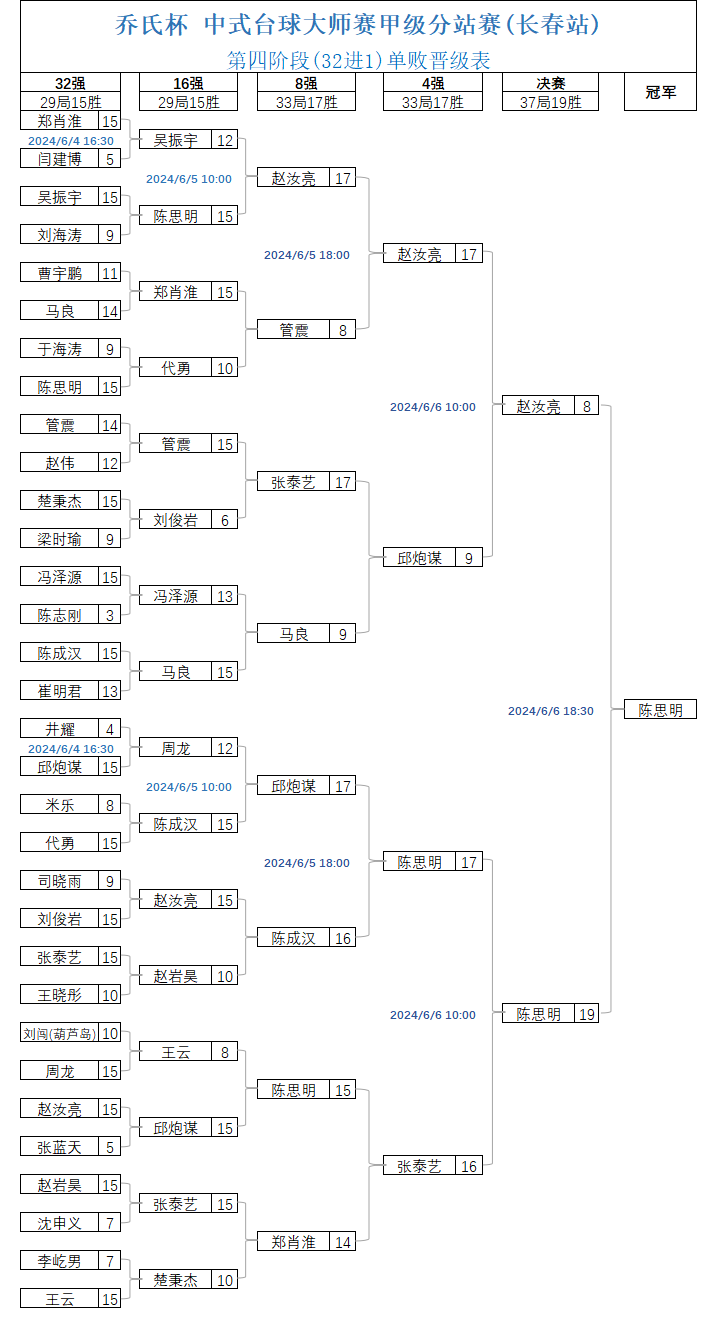 乔氏|大师赛(甲级分站赛·长春站)·赛果【陈思明 60万】