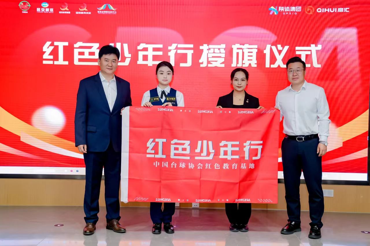 活动最后,基地向全体运动员和裁判员授予“红色少年行”旗帜。随后,中国台球协会红色教育基地组织上百名运动员、裁判员们以及其他工作人员,共同开启了首期“红色少年行”活动。