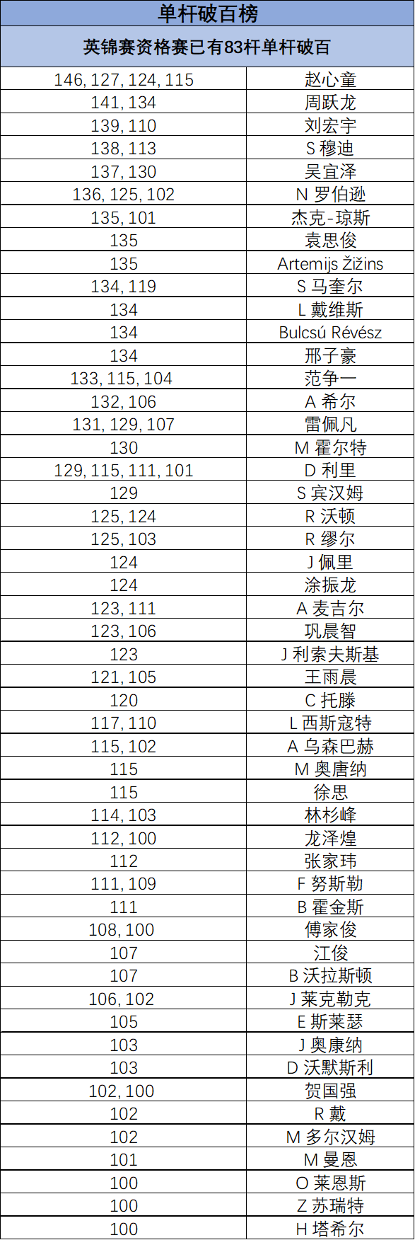 2024英国锦标赛资格赛·对阵表·单杆榜