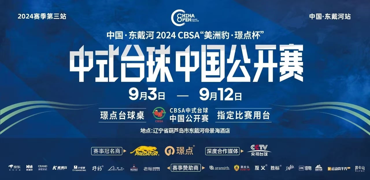 9月3日-9月12日,2024CBSA“美洲豹·璟点杯”中式台球中国公开赛(河北·山海关站)在河北省秦皇岛市山海关区璟点赛事中心举办。