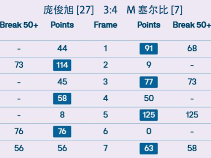 庞俊旭 [27] 3:4 M 塞尔比 [7] 详情