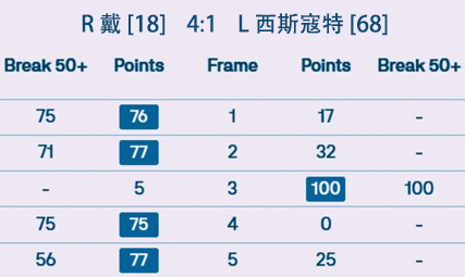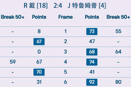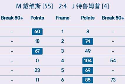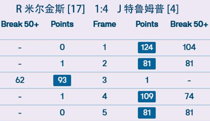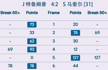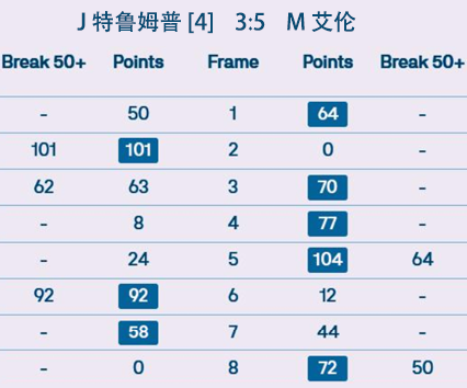 第二局特鲁姆普打出了职业生涯的第1000杆破百