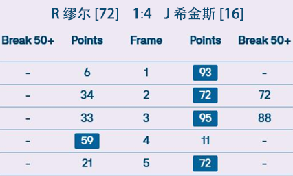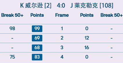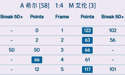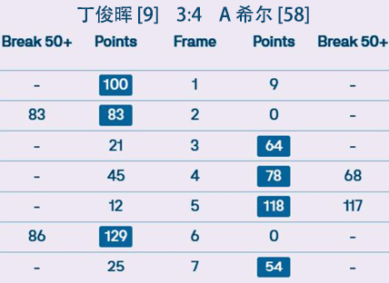 丁俊晖 [9] 3:4 A 希尔 [58] 详情