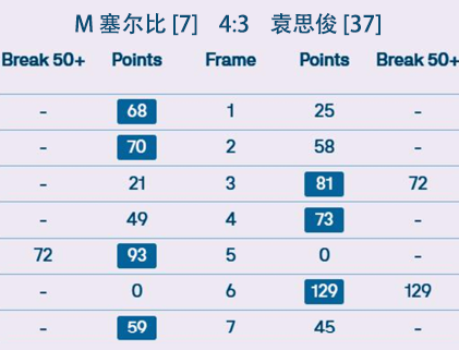 M 塞尔比 [7] 4:3 袁思俊 [37] 详情