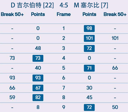 D 吉尔伯特 [22] 4:5 M 塞尔比 [7] 详情