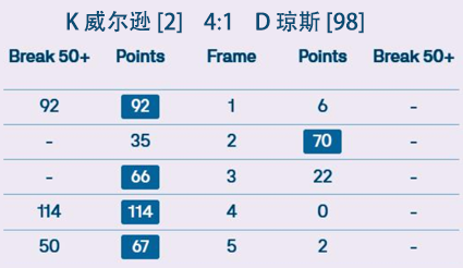 K 威尔逊 [2] 4:1 D 琼斯 [98] 详情
