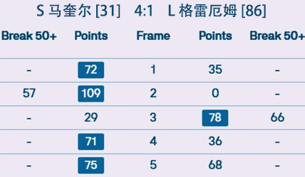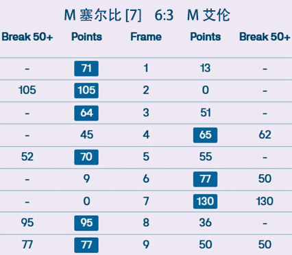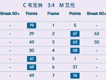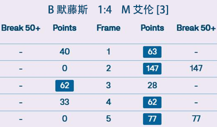 第二局M艾伦打出了147,这是他职业生涯的第4个147,也是官方第205个147