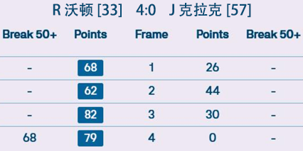 R 沃顿 [33] 4:0 J 克拉克 [57] 详情