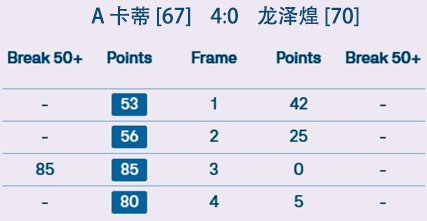A 卡蒂 [67] 4:0 龙泽煌 [70] 详情