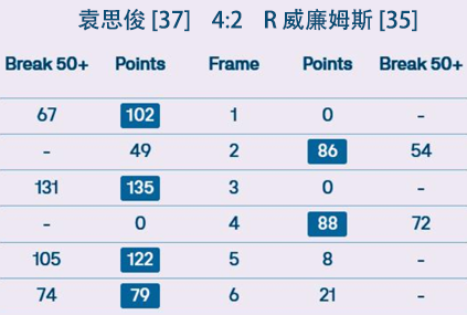 袁思俊 [37] 4:2 R 威廉姆斯 [35] 详情