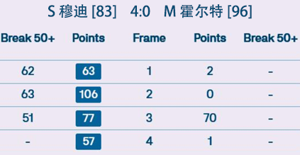 S 穆迪 [83] 4:0 M 霍尔特 [96] 详情
