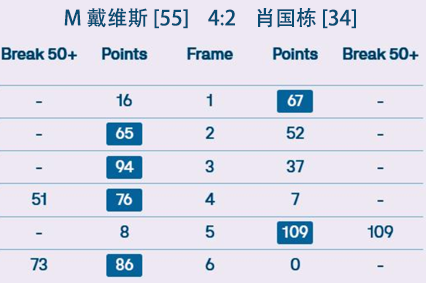 M 戴维斯 [55] 4:2 肖国栋 [34] 详情