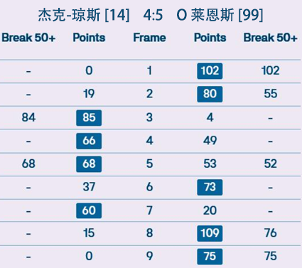 J 希金斯 [16] 6:0 O 莱恩斯 [99] 详情