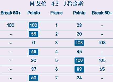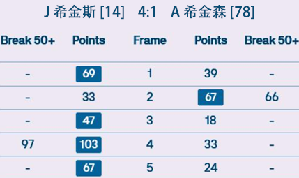 希金斯在第五局完成职业生涯的第1000杆破百,是第二位达到这一成就的球员。
