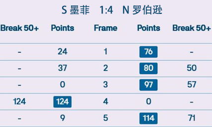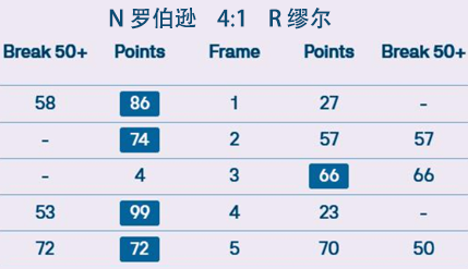 N 罗伯逊 4:1 R 缪尔 详情