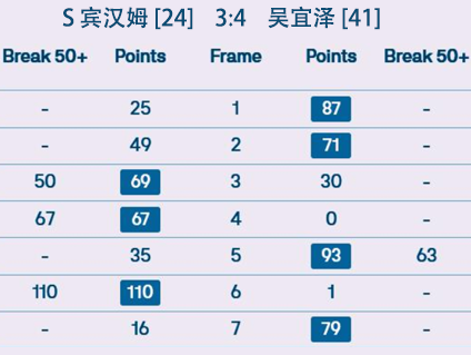 S 宾汉姆 [24] 3:4 吴宜泽 [41] 详情