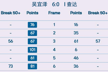 吴宜泽 6:0 I 查达 详情