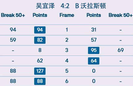 吴宜泽 4:2 B 沃拉斯顿 详情