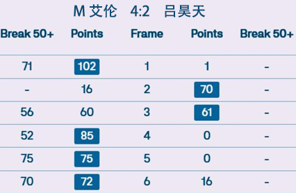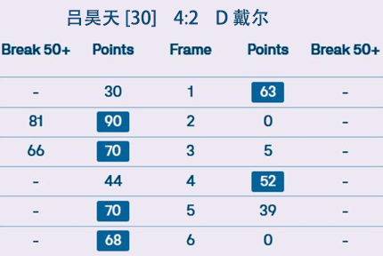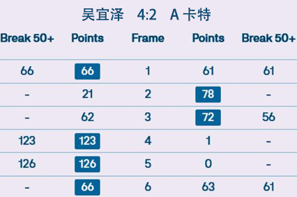 吴宜泽 4:2 A 卡特 详情