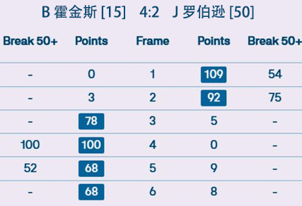 B 霍金斯 [15] 4:2 J 罗伯逊 [50] 详情