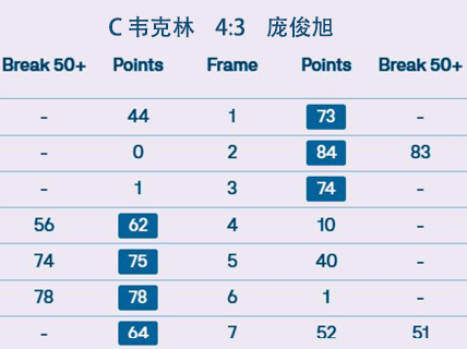 C 韦克林 4:3 庞俊旭 详情