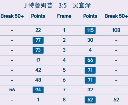 J 特鲁姆普 3:5 吴宜泽 详情