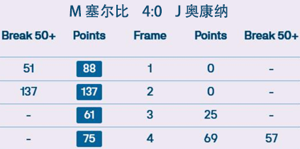 M 塞尔比 4:0 J 奥康纳 详情
