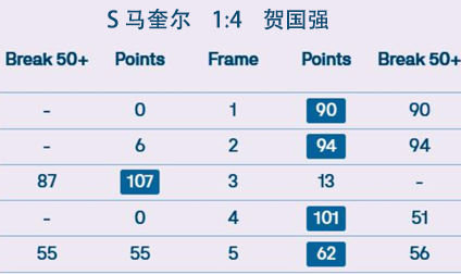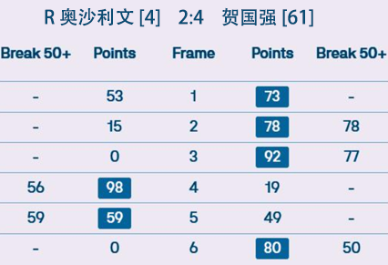 R 奥沙利文 [4] 2:4 贺国强 [61] 详情