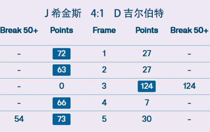 J 希金斯 4:1 D 吉尔伯特 详情