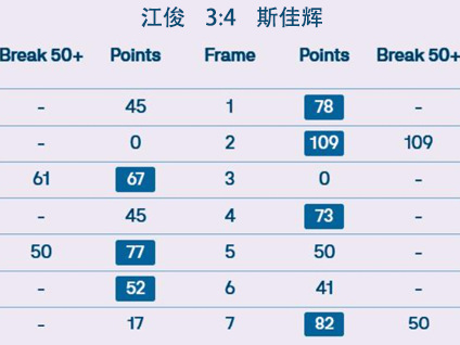 江俊 3:4 斯佳辉 详情