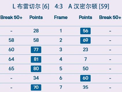 L 布雷切尔 [6] 4:3 A 汉密尔顿 [59] 详情