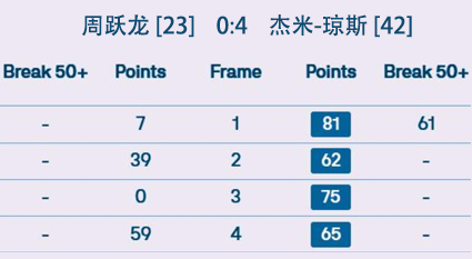 周跃龙 [23] 0:4 杰米-琼斯 [42] 详情