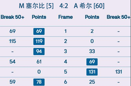 M 塞尔比 [5] 4:2 A 希尔 [60] 详情