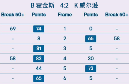 B 霍金斯 4:2 K 威尔逊 详情