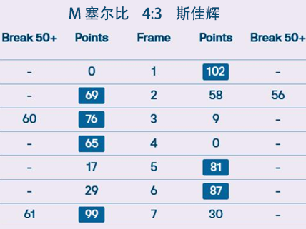 M 塞尔比 4:3 斯佳辉 详情