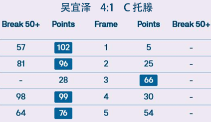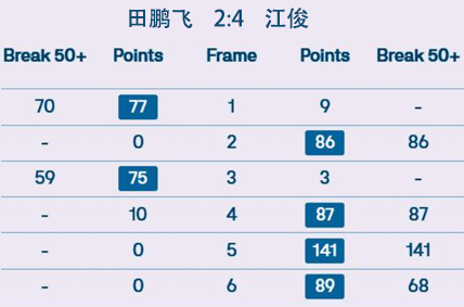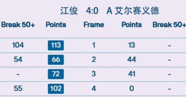 第五局江俊打出141分,这是他职业生涯中的新高分杆记录。