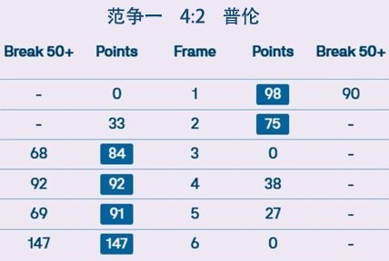 在最后一局中,范争一打出了个人职业生涯中的第一个147分。这是职业斯诺克历史上的第204个147,也是本赛季的第二个147。